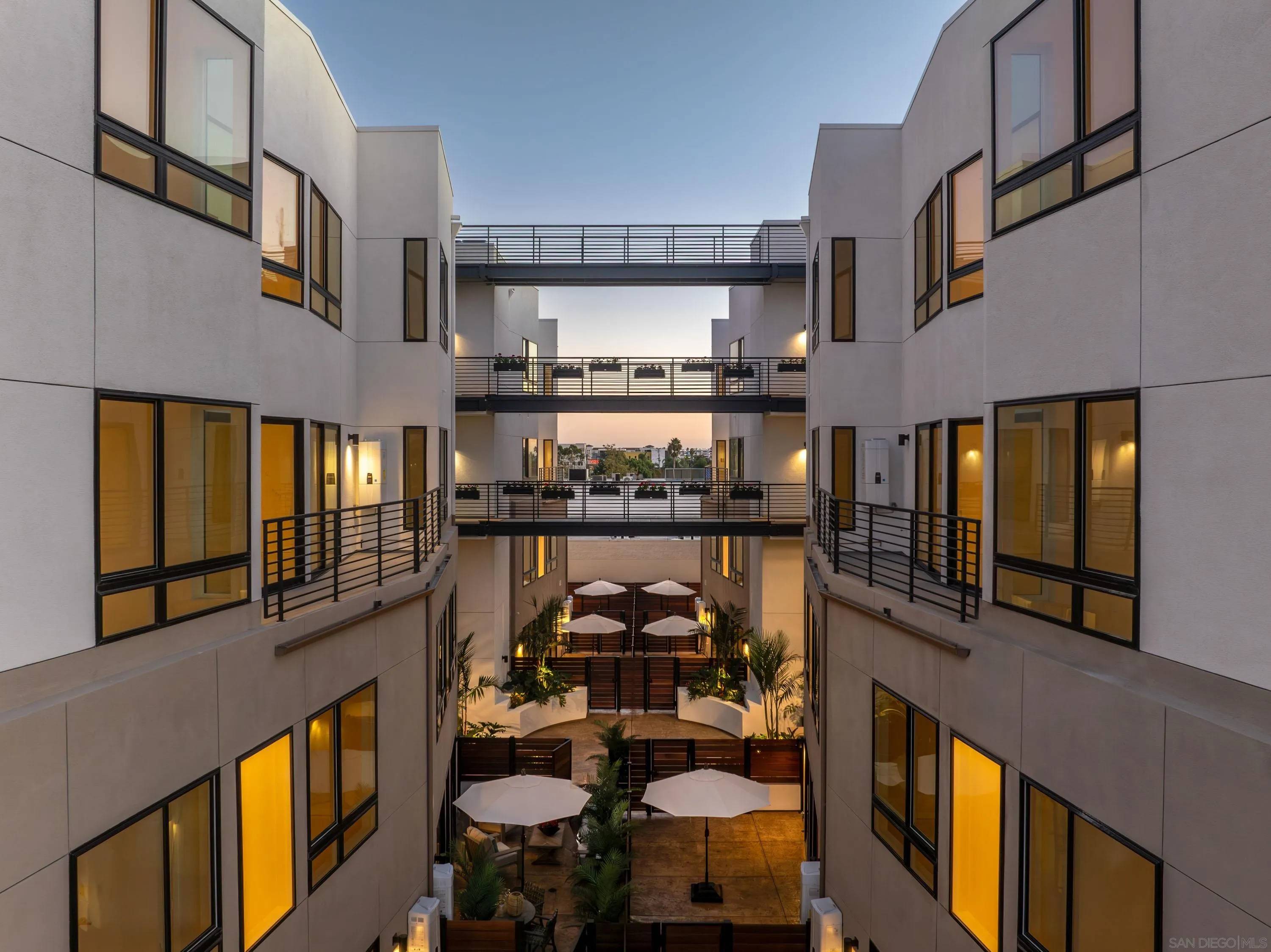 Discover this stunning 2-bedroom, 2-bath condominium, perfectly positioned on the northwest corner of the 4th floor in the east building. Offering sweeping urban vistas, breathtaking sunset views, and a dazzling display of community lights, this home is a masterpiece of modern luxury. Elegantly designed interiors showcase premium finishes, high ceilings, and abundant natural light, delivering a harmonious balance of sophistication and comfort. Expansive open living spaces flow effortlessly into a designer kitchen, thoughtfully appointed to elevate everyday living. Located in one of San Diego's most dynamic neighborhoods, this newly completed condominium complex is home to just 35 exclusive residences—a rare chance to own a piece of refined city living. Enjoy unmatched views from your private outdoor patio, with a beautifully curated space that blends style with convenience. This home is just steps away from acclaimed dining, boutique shopping, and cultural attractions, making city living both vibrant and effortless. Photos reflect model units and may not represent the exact floor plan. Experience elevated urban living at its finest and don't miss this exceptional opportunity.