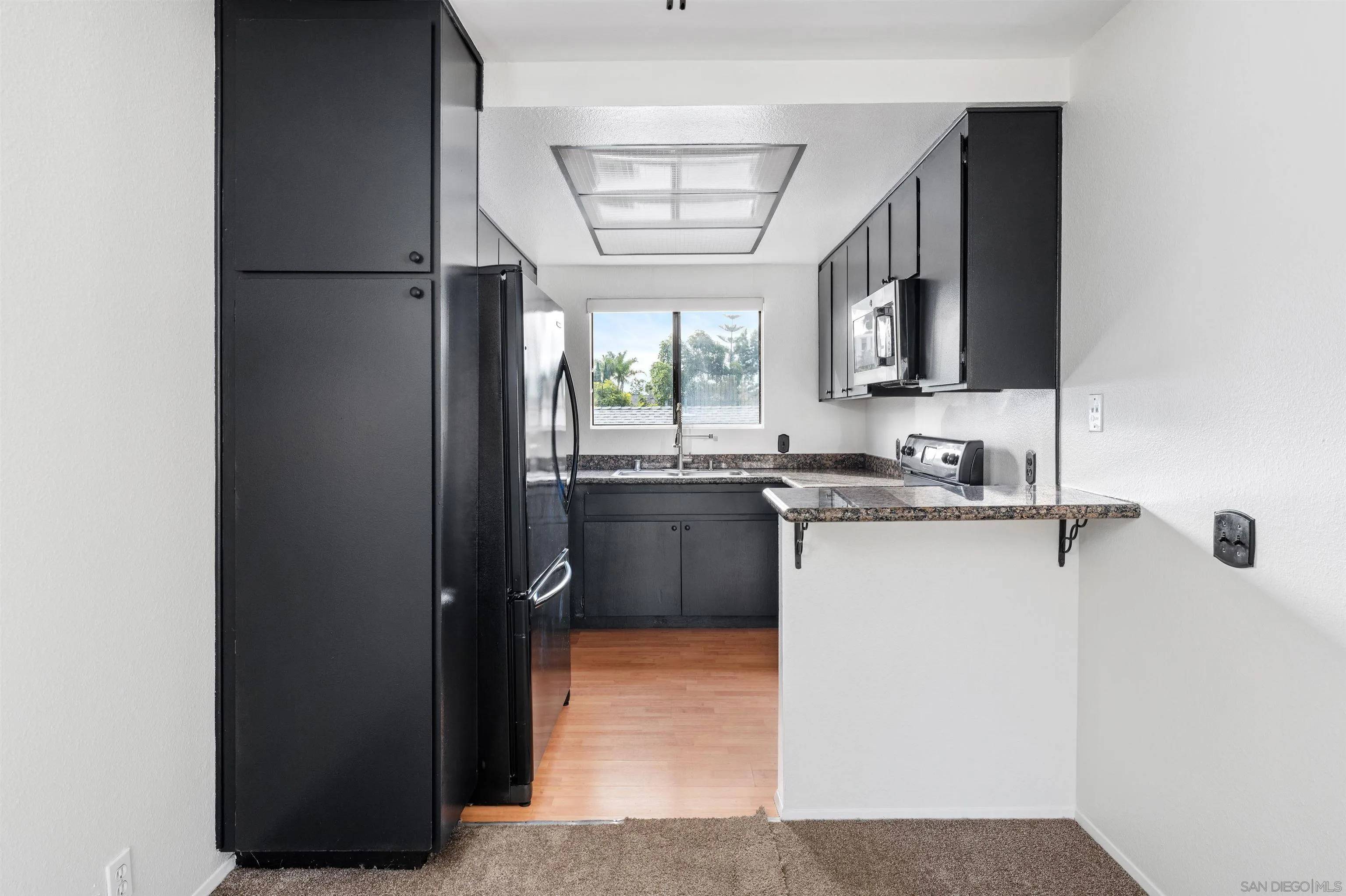 Welcome to this beautiful 2-bedroom, 2-bath condo located in a desirable gated community. This light filled second floor home features an open floor plan with vaulted ceilings, a charming skylight, and a cozy fireplace in the living room. The kitchen offers granite countertops and ample storage, while brand new carpet adds fresh comfort throughout. Enjoy a walkable community with easy access to nearby shops, dining, and conveniences. A wonderful opportunity for comfortable, low maintenance living, and inviting setting.