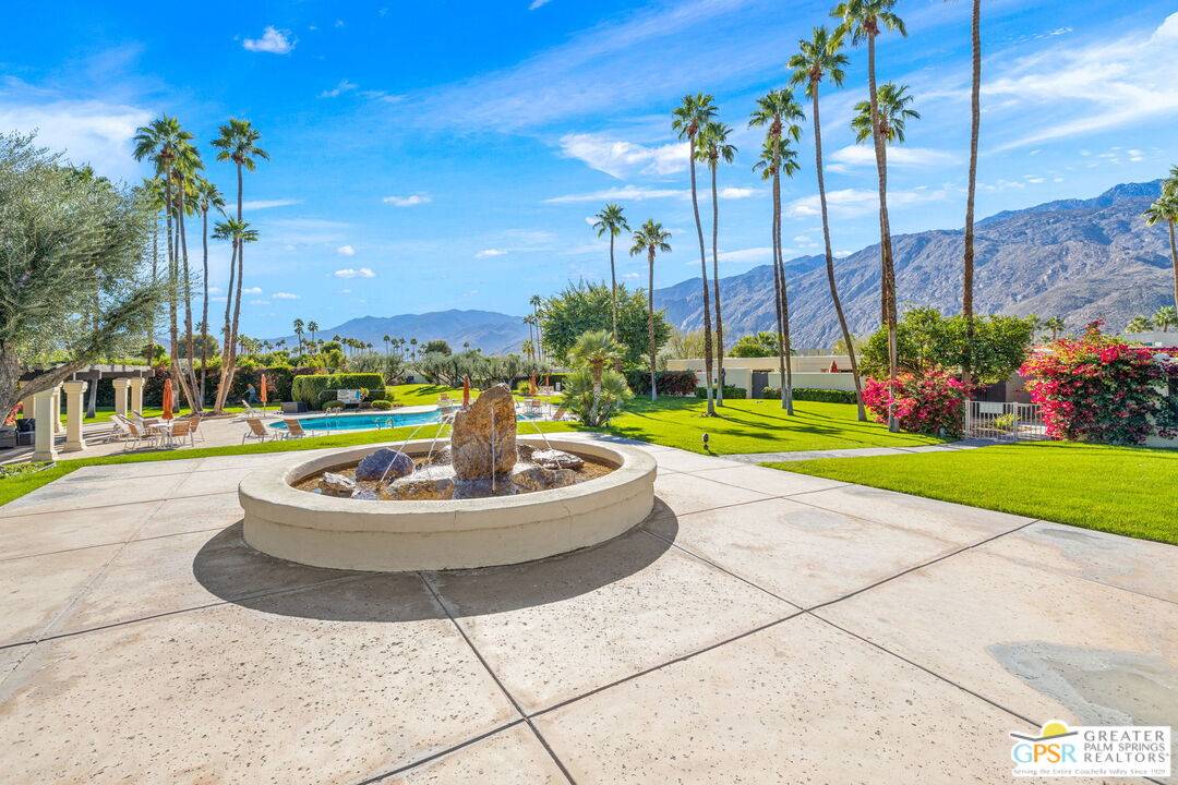 For those who know! The ONE TO SEE! Welcome to Greenhouse with its NEXT LEVEL setting, expansive green lawns, dramatic mountain views, and wide-open pool areas including a junior olympic pool framed by umbrellas that deliver exceptional quality of life in one of the finest condominium settings in Palm Springs. No power lines overhead either. A sunken, lighted tennis court and fabulous outdoor pavilion add to the appeal. This 2 bedroom, 2 bath home enjoys San Jacinto mountain views to the west from every room plus the private patio. The kitchen features cultured stone counters and stylish cabinetry, with tile flooring underfoot in the main living areas. Bedrooms enjoy a nice separation. The ensuite primary includes a separate office area and direct access to the patio. Both bedrooms feature carpet underfoot for added comfort.Additional highlights include retractable sunshades on all windows, a 16-foot SunSetter awning along the patio, newer dual-pane glass slider in the living room, and newer sinks and fixtures throughout including kitchens and bathrooms. Home was repiped in 2020. LED landscape lighting adds yet another thoughtful detail. The proximity to The Movie Colony completes the picture of easy Palm Springs living.
