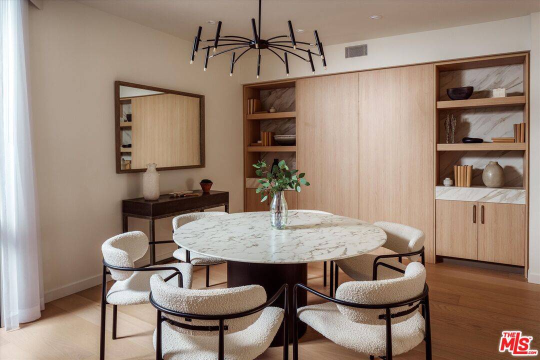 Presenting an exclusive opportunity for discerning buyers: a condominium at the esteemed IV Seasons North Condominiums in Beverly Hills. Reenvisioned by an internationally published and nationally award-winning architect, this residence features a tasteful aesthetic and soft color palette complemented by elegant architectural details. Upon entering through the formal foyer, you'll find a well-appointed living room with a custom fireplace and cabinetry, an adjacent formal dining room, and a gourmet kitchen equipped with top-of-the-line appliances, custom cabinetry, and a breakfast area. The expansive living and breakfast room terraces provide serene tree-top, city, and mountain views, enhancing the seamless indoor-outdoor flow of the residence. The primary suite serves as a private retreat, complete with dual custom walk-in closets and a spa-inspired bath with designer finishes, a soaking tub, a glass-enclosed stall shower, a linen closet, and a private water closet. The spacious secondary guest suite includes 2 closets and a modern en-suite bath. A versatile den offers space for a home office, media room, or additional living area. The redesigned in-unit laundry room adds convenience and houses new HVAC equipment. Residents of IV Seasons North Condominiums enjoy luxury amenities, including 24/7 doormen, valet parking, a newly updated pool and spa, a gym, and secure storage. The central Beverly Hills location offers proximity to the vibrant dining, and shopping scenes of Beverly Hills & Century City, West Hollywood's nightlife and dining, the upscale Melrose design and couture shopping district, and the arts and culture of Los Angeles.